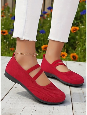ballerine Mary Jane Flyknit rosse larghe da donna – scarpe comode e traspiranti con punta tonda per Natale, giardino e viaggi