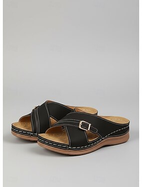 sandali comodi con fibbia e cinturino incrociato da donna: scarpe da passeggio aperte e di supporto per l'uso quotidiano, viaggi, giardinaggio, shopping e gite per il tempo libero