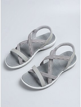Sandali piatti da donna in maglia – scarpe da passeggio leggere e comode, sandali estivi traspiranti a punta aperta per viaggi, passeggiate in giardino, vacanze &abbigliamento quotidiano
