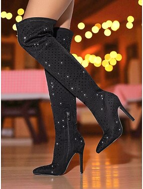 stivali da donna con tacco alto sopra il ginocchio e strass - calzature da festa con punta affilata e scintillante per outfit da discoteca e per la vita notturna