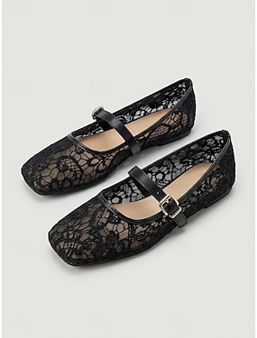 Ballerine Mary Jane da donna bianche in pizzo - ballerine traspiranti a punta quadrata con inserti in rete floreale &cinturino alla caviglia per vacanze su isole e matrimoni in spiaggia &abbigliamento