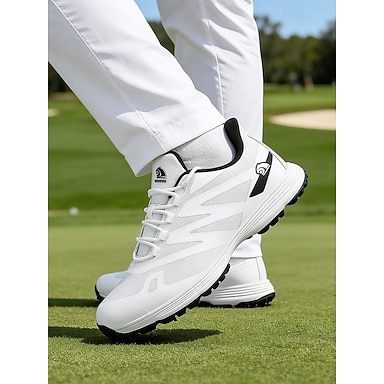 scarpe da golf bianche da uomo, tomaia leggera e traspirante, suola ammortizzata, stile sportivo pulito per golfisti e giochi all'aperto