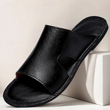 sandali da uomo in similpelle marrone con cinturino largo, plantare morbido, design facile da infilare per adulti, ideali per il relax in casa, per il comfort estivo in salotto