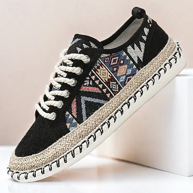 sneakers casual da uomo in tela con stampa tribale e suola in corda di juta – comode calzature per tutti i giorni