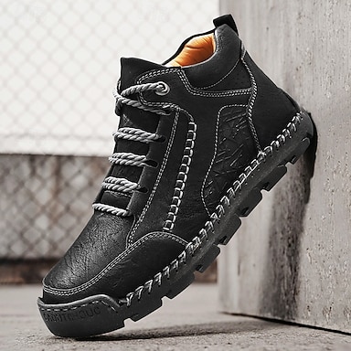 scarpe da ginnastica casual alte da uomo in similpelle marrone con suola in gomma antiscivolo – comode scarpe sportive con lacci per passeggiate all'aperto, viaggi e uso quotidiano