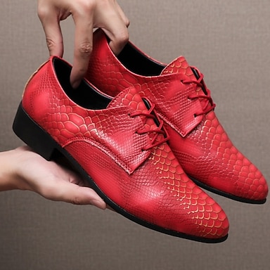Scarpe eleganti da uomo Oxford rosse con stampa coccodrillo, stringate, in pelle, formali, adatte per matrimoni, banchetti, feste, balli di fine anno, ufficio e serate eleganti.