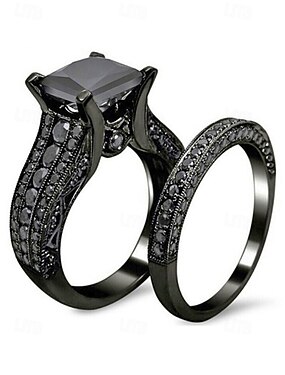 set di anelli da uomo con pietra nera, stile gotico vintage in lega con gemma a taglio quadrato, opzioni multicolore per fedi nuziali, fidanzamenti, feste e abbigliamento casual quotidiano