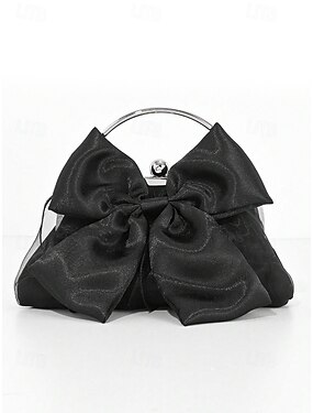 Pochette da sera con fiocco in raso da donna – elegante borsa con manici e cornice in madreperla per spose, matrimoni, cocktail party ed eventi formali, argento, nero e bianco.