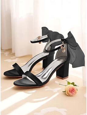 sandali da sposa con fiocco bianco per la sposa, scarpe con tacco a blocco e cinturino alla caviglia per matrimoni in giardino, in chiesa e formali