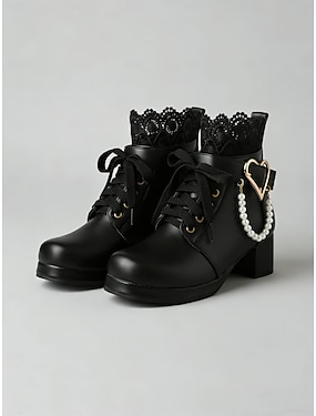 stivaletti da sposa bianchi da donna – scarpe da sposa allacciate con decorazione a cuore e perle, tacco spesso per spose di ispirazione vintage