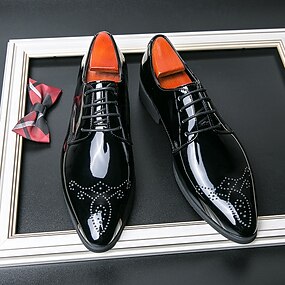 Scarpe Oxford da uomo in pelle verniciata nera, stringate, eleganti, formali, lucide, adatte per lavoro, matrimoni, sposo, ufficio, banchetti, feste, eventi serali e stile da gentiluomo elegante.