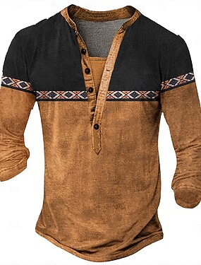 Per uomo Tribale Maglietta Maglia Henley Manica Lunga Stampa 3D Designer Retrò Vintage Streetwear Casuale Quotidiano Estate Primavera Autunno Marrone Scuro Nero Blu Marrone Verde Henley Maglietta