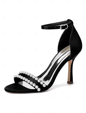 sandali da donna con tacco alto in argento - eleganti scarpe da sposa con cinturino in perle per matrimoni in giardino