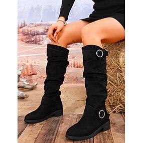 stivali alti fino al ginocchio in pelle scamosciata con fibbia da donna – stivali casual retrò con tacco piatto per outfit quotidiani, viaggi e stile outdoor da donna