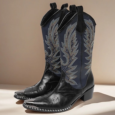 stivali da cowboy da uomo blu navy e neri con ricami dorati: eleganti stivali western per spettacoli teatrali, feste country e feste a tema