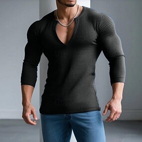 Per uomo Maglietta Waffle Maglietta Manica Lunga Scollo a V Aperto davanti Primavera & Autunno Tinta unica Testurizzato Moderno Scollo a V All'aperto Casa Sport & Outdoor Nero Blu marino Maglietta