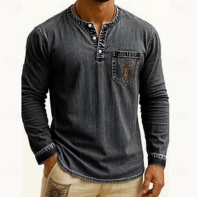 Per uomo Maglia Henley Maglietta Camicia a Maniche Lunghe Manica Lunga Henley Autunno Inverno Renna Cervo Moda Designer Tinto in capo Sbiadito Moda Vacanza Streetwear Uscire Marrone scuro blu navy