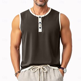 Per uomo Canotta Maglietta smanicata Canottiera Maglietta senza maniche Senza Maniche Henley Estate Semplice Moda Designer Essenziale Bottoni Casuale Vacanza Streetwear Nero Rosa Blu marino Maglietta