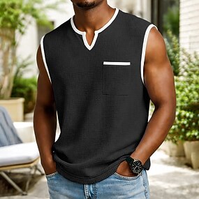 Per uomo Canotta a nido d'ape Maglietta Senza Maniche Scollo a V Con intaglio Estate Blocco di colori Testurizzato Moda Classico Casual Tasca Casuale Streetwear Sportivo Blu Nero Blu marino Maglietta