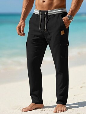 Per uomo Pantaloni Cargo Pantaloni di Lino Pantaloni Estivi Coulisse Elastico in vita Gamba Dritta Semplice Comodità Traspirante Lunghezza intera Casuale Quotidiano Spiaggia Vacanza Moda Blu Nero