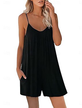 Per donna Normale Tuta Attivo Tinta unica Senza maniche A V Lacci Tasche Da mare Giornaliero Standard Nero Vino Estate