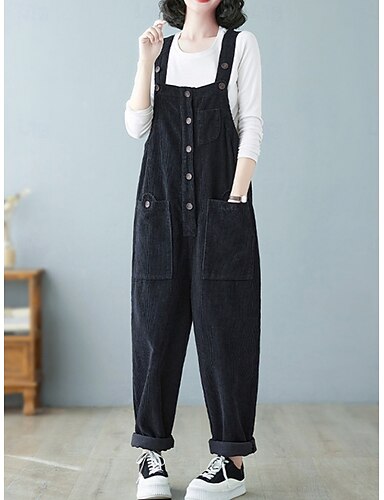 Per donna Normale Tuta Essenziale Tinta unica Senza maniche Girocollo Bottoni Tasche Strada Giornaliero Standard Nero Verde chiaro Rosa Estate