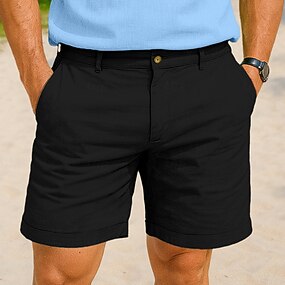 Per uomo Shorts di Lino Shorts eleganti Pantaloncini Estivi Shorts da Spiaggia Cerniera Tasca Bottoni Tinta unica Semplice Comodità Morbido Lunghezza al ginocchio All'aperto Casuale Quotidiano
