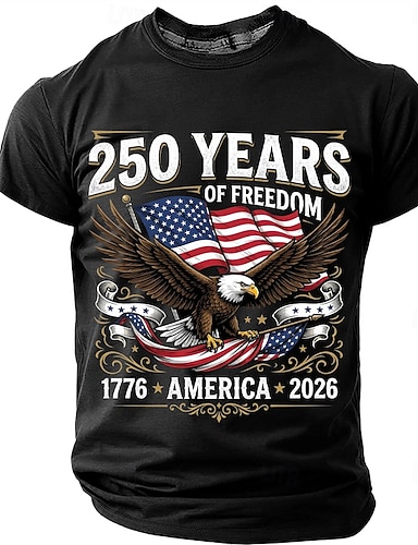 250 anni di libertà 1776 2026 maglietta patriottica da uomo con aquila calva, bandiera americana, vintage, orgoglio USA, girocollo, maniche corte, 4 luglio, celebrazione del quinquennio, regalo,