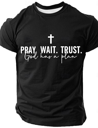 Maglietta da uomo a maniche corte con stampa croce e Bibbia, stampa 3D, girocollo, stile vintage retrò, ideale per festival quotidiani, blu, nero, bordeaux, estate, primavera, taglie S, M, L, XL, 2XL,