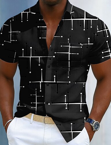 Per uomo Geometrico A pois Linea Camicia Camicia Estiva Camicia con Bottoni Manica Corta Business Casual Quotidiano Ufficio / Carriera Ferie Estate Primavera Collo ripiegato Stampa 3D Una tasca