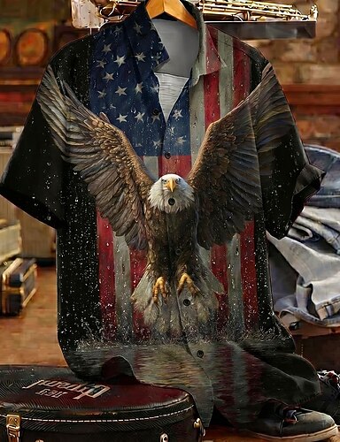 Per uomo 4 luglio, 250° anniversario degli Stati Uniti Aquila Bandiera Americana Camicia Camicia Estiva Camicia con Bottoni Manica Corta Patriotico All'aperto Ferie Estate Primavera Collo ripiegato