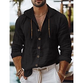 Per uomo Camicia Camicia di lino Camicia casual Camicia con Bottoni Camicie sbottonate Semplice Vacanza Streetwear Nero Bianco Blu marino Marrone Senza Maniche Con Cappuccio Estate Abbigliamento