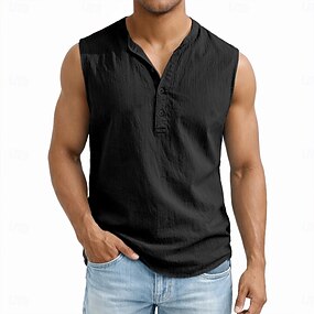 Per uomo Canotta Maglietta smanicata Canottiera Maglietta senza maniche Senza Maniche Colletto Henley Henley Estate Primavera Semplice Moda Designer Essenziale Bottoni Casuale Vacanza Streetwear Nero