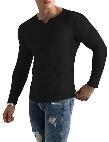 Per uomo Maglietta Waffle Maglietta Manica Lunga Girocollo Inverno Primavera & Autunno Tinta unica Tradizionale / Vintage Girocollo All'aperto Casa Sport & Outdoor Esercito verde Grigio scuro Nero