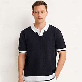 Per uomo Polo Maglione polo lavorato a maglia Affari Casuale Scollo a V Manica Corta Formale Blocco di colori Novità Estate Tutte le stagioni Nero Bianco Cachi Verde militare Polo