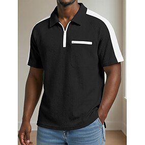 Per uomo Magliette Polo a Nido d'Ape Polo con zip Casuale Ferie Zip a un quarto Manica Corta Moda Essenziale Semplice Zip a un quarto Estate Primavera Tutte le stagioni Nero Bianco Blu marino