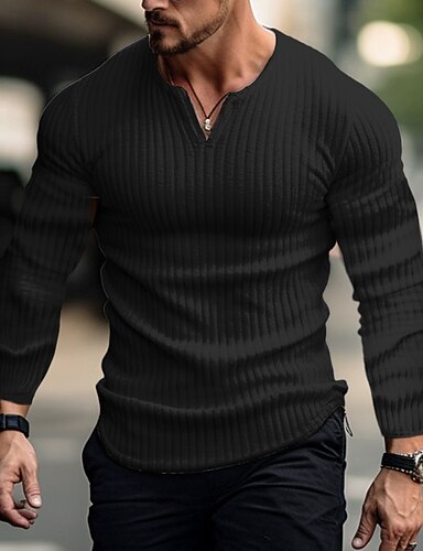 Per uomo Maglietta Maglia Henley Canotta Muscolare Maglietta a Maglia a Coste Camicia a Maniche Lunghe Manica Lunga Semplice Striscia di Fossa Moda Designer Essenziale Classico Scollo a V Vacanza