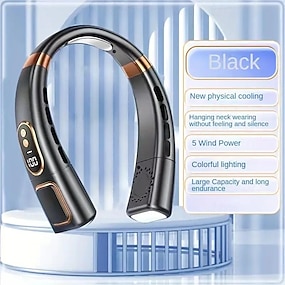 Ventilatore da Collo Indossabile a 5 Velocità – Raffreddatore d'Aria Silenzioso a Controllo Tattile Alimentato da USB per Sport e Viaggi all'Esterno