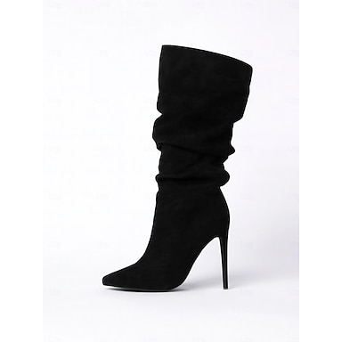 stivali stiletto scamosciati da donna, stivali a punta con tacco alto e a metà polpaccio in vari colori per outfit autunnali e invernali alla moda