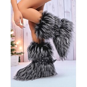 stivali invernali da donna in pelliccia sintetica con dettaglio cintura - comodi &elegante design ispirato ai vichinghi nordici, perfetto per le meraviglie invernali, il Natale e le avventure all'aria