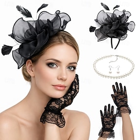 Guanti Collana Cappello Fascinator Gentildonna Costume Per donna Mascherata Feste Ascot Festival delle corse di cavalli Adulti Copricapo Tutte le stagioni