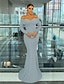 Abito da sera a sirena in sequin abito in satin arricciato maniche lunghe mascherata lunghezza sul pavimento collo illusorio con perle e sovrapposto