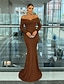 Tubino / Colonna Lunghezza al pavimento Abito da ballo con mantello Abito da Sera Abito formale Elegante Manica Lunga Collo alla coreana Formale Matrimonio Velluto con Pieghe