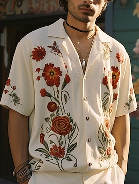 Per uomo Floreale Camicia Camicia con Bottoni Manica Corta Sport Moda Streetwear Casuale All'aperto Ferie Estate Primavera Colletto cubano Stampato Bianco Giallo Vino Rosso