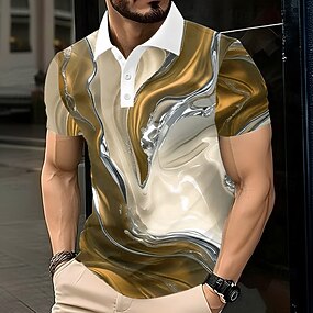 Per uomo Astratto Marmo Polo Manica Corta Magliette polo Bavero Business Casual Athleisure Abbigliamento quotidiano Stampa 3D Bottoni Estate Blu Oro Verde