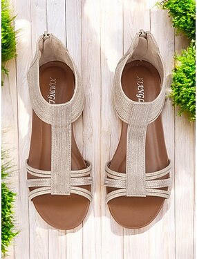 sandali con zeppa boho da donna – scarpe estive aperte con accenti di perline e cinturino regolabile per abbigliamento casual e da spiaggia