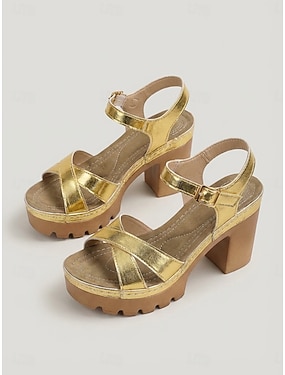 sandali da donna con tacco alto e cinturino in oro con plateau - scarpe da festa con tacco spesso metallizzato per locali notturni ed eventi serali
