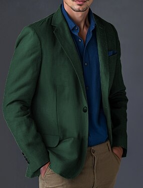 Per uomo Blazer di Lino Giacca Sportiva Colletto ad incastro Moda Casual Tinta unita Blazer in lino Blu Verde militare Vestibilità standard Monopetto Un Bottone