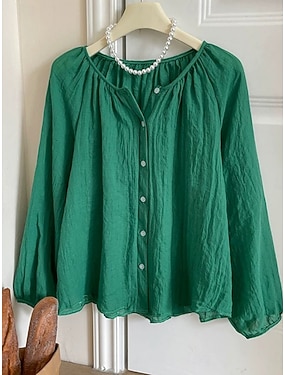Per donna Blusa Camicia in finto lino Tinta unica Elegante Casual Manica 3/4 Girocollo Top Regolari Quotidiano Blu Bianco Verde chiaro Estate Primavera Autunno