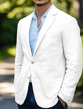 Per uomo Blazer di Lino Giacca Sportiva Matrimonio Casual Quotidiano Moda Tutte le stagioni Cotone Lino Tinta unita Base Monopetto due bottoni Giacca Bianco Azzurro cielo Beige